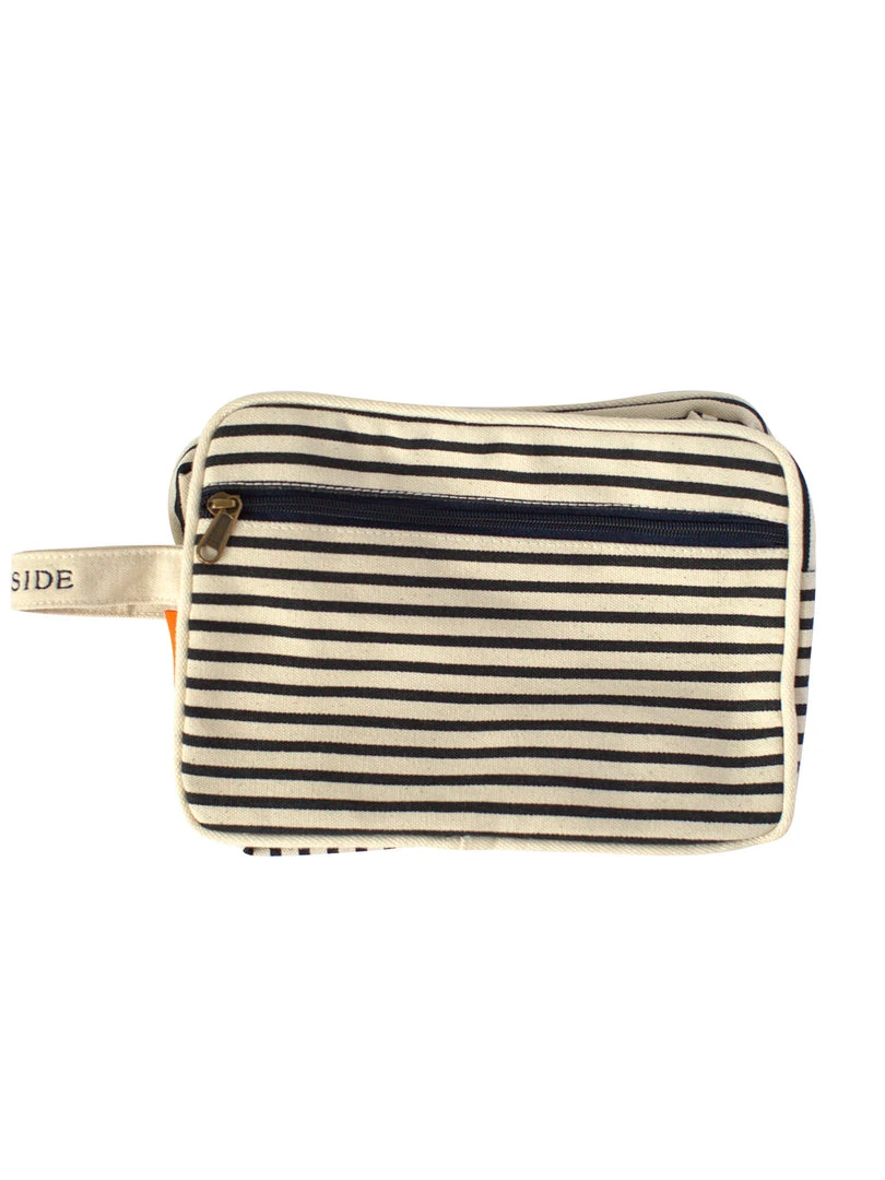 With It’s spacious lined interior, zip closure top and outside zip pocket, the Lined Travel Kit is truly the perfect small traveling companion for storing just about anything. Featuring our nautical inspired Navy Stripe pattern, this versatile accessory is sure to withstand repeated use in style, no matter what you’ve chosen to use it for; cosmetics, toiletries, baby supplies, or children’s toys.