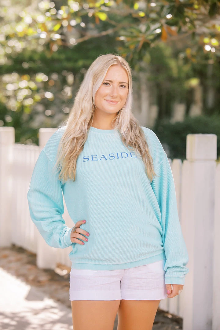 Features include a crew style neck as well as rib knit trim on neckline, cuff and bottom opening.
