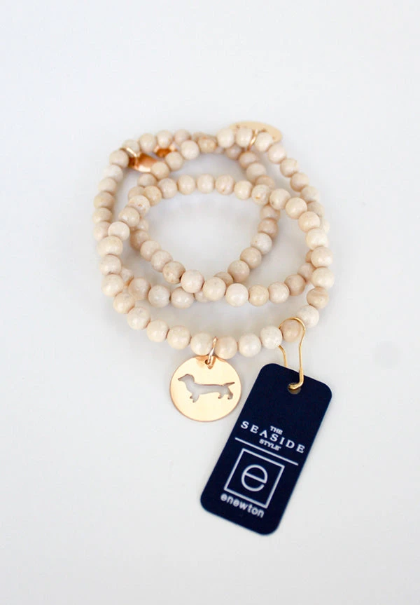 enewton Riverstone Promise bracelet with gold filled Bud the Dachshund disc