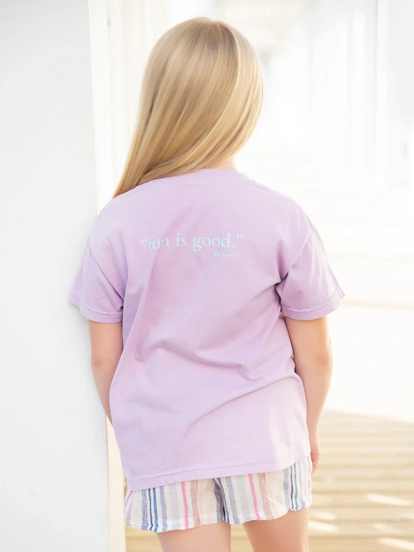 Seaside logo screen printed on the front. Tagline, “fun is good.” Dr. Seuss, on the back.